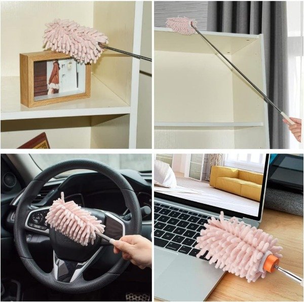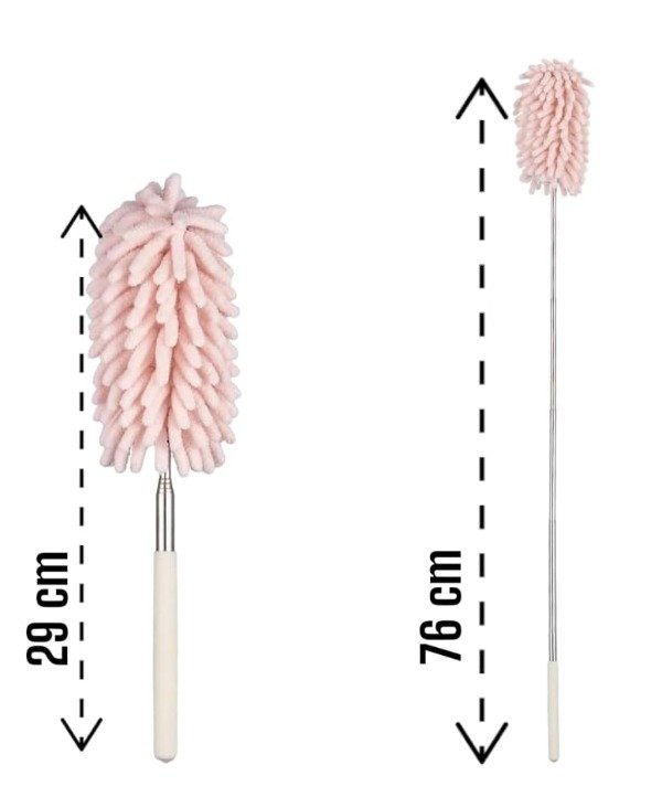 Mantené tu casa limpia sin esfuerzo con este plumero telescópico súper práctico. Se extiende de 29 cm a 76 cm, permitiéndote llegar a zonas altas, estantes, rincones y espacios difíciles sin necesidad de subirte a una silla.
