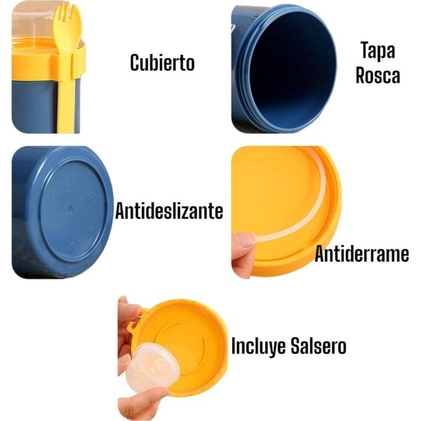 - Incluye cubierto 2 en 1 (cuchara/tenedor).