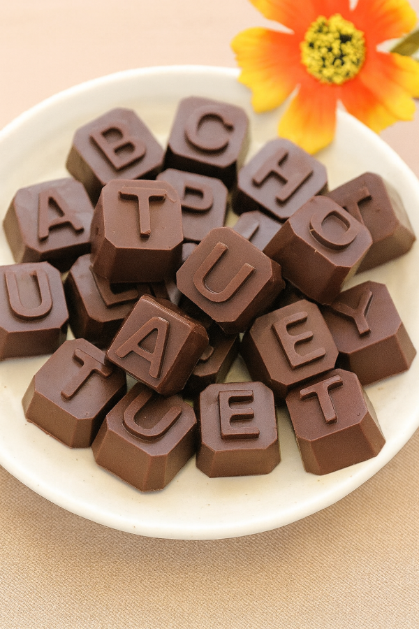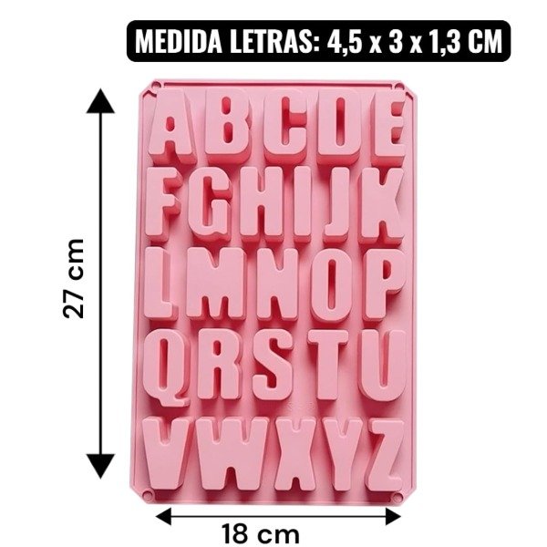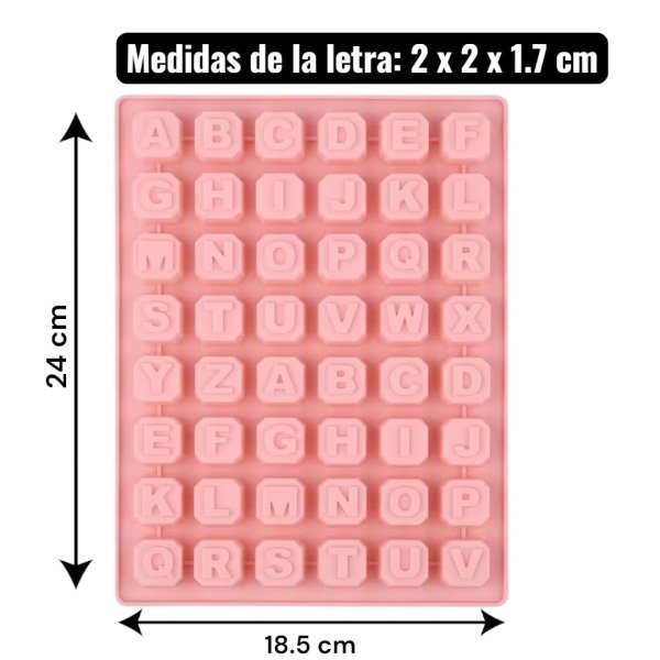 Este set incluye 2 moldes de silicona con letras individuales, uno grande y uno pequeño, ideales para crear bombones, letras de chocolate, gelatina, hielo, fondant y mucho más.