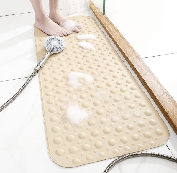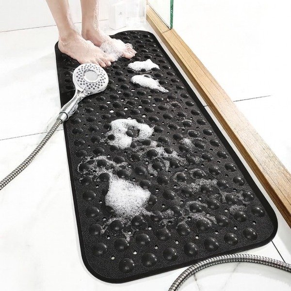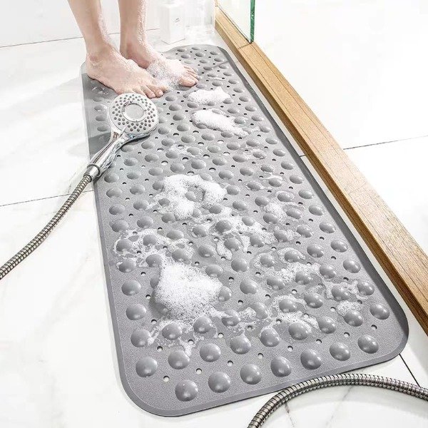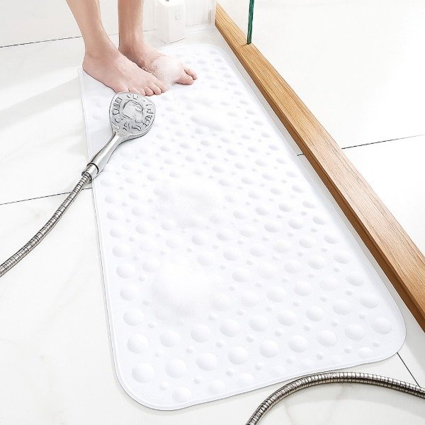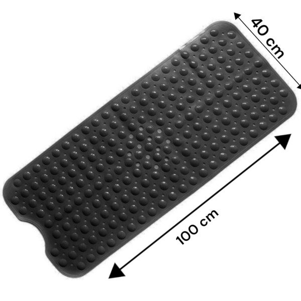 Alfombra antideslizante para bañadera de 100 x 40 cm, ideal para brindar seguridad y comodidad al momento de la ducha. Fabricada en PVC resistente, con ventosas que se adhieren firmemente a la superficie evitando deslizamientos. Su diseño con relieve permite un buen drenaje del agua y una sensación cómoda al pisar.