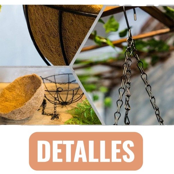 Este macetero colgante es perfecto para plantas colgantes, helechos, potus, calatheas y más. Gracias a su sistema de cadenas regulables, podés ajustar la altura para adaptarla a cualquier espacio.
