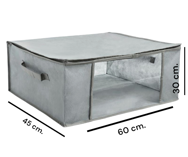 Organizá tu hogar de manera práctica y eficiente con esta bolsa de guardado de gran capacidad. Con medidas de 60 x 45 x 30 cm, es ideal para almacenar mantas, acolchados, sábanas, ropa de temporada o cualquier textil voluminoso.