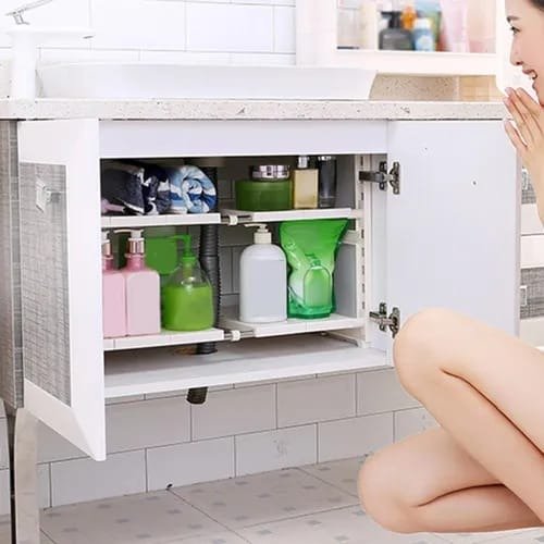 Gracias a su sistema de presión, se instala fácilmente entre dos paredes internas del mueble, generando un nivel adicional de apoyo. Esto te permite aprovechar al máximo la altura disponible, manteniendo todo más ordenado y visible: podés usarlo para platos, frascos, artículos de despensa, productos de limpieza o incluso ropa y accesorios.