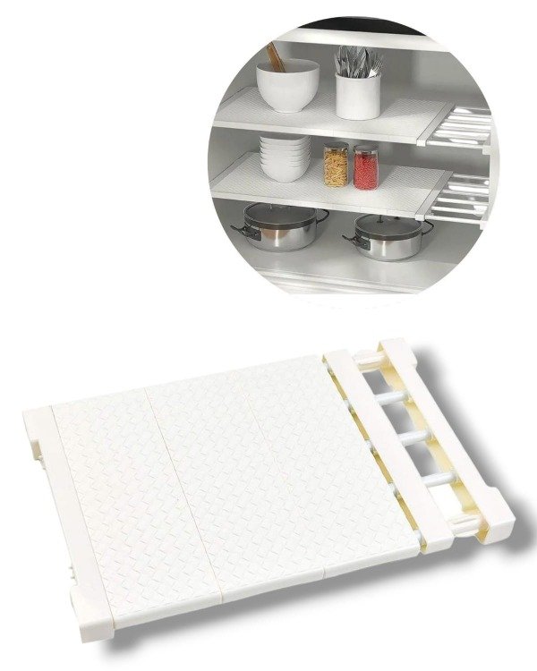 Este estante extensible es la solución ideal para organizar mejor tus espacios sin necesidad de hacer agujeros ni usar herramientas. Su diseño regulable te permite adaptarlo al ancho exacto que necesitás, con un largo que va desde los 38 cm hasta los 55 cm, y una superficie de 24 cm de profundidad. Es perfecto para colocar dentro de alacenas, estantes, placares o muebles bajos.